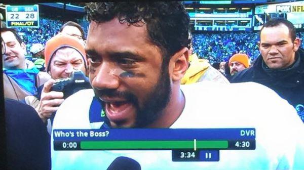 Here's a video of me standing behind Seattle Seahawks quarterback Russell Wilson after a huge win that led the team to the Super Bowl.
